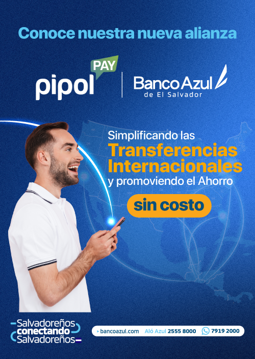 Banco Azul se asocia con Pipol Pay como canal transaccional para ofrecer a sus clientes la posibilidad de transferir dinero desde bancos en Estados Unidos hacia cuentas de Banco Azul en El Salvador.